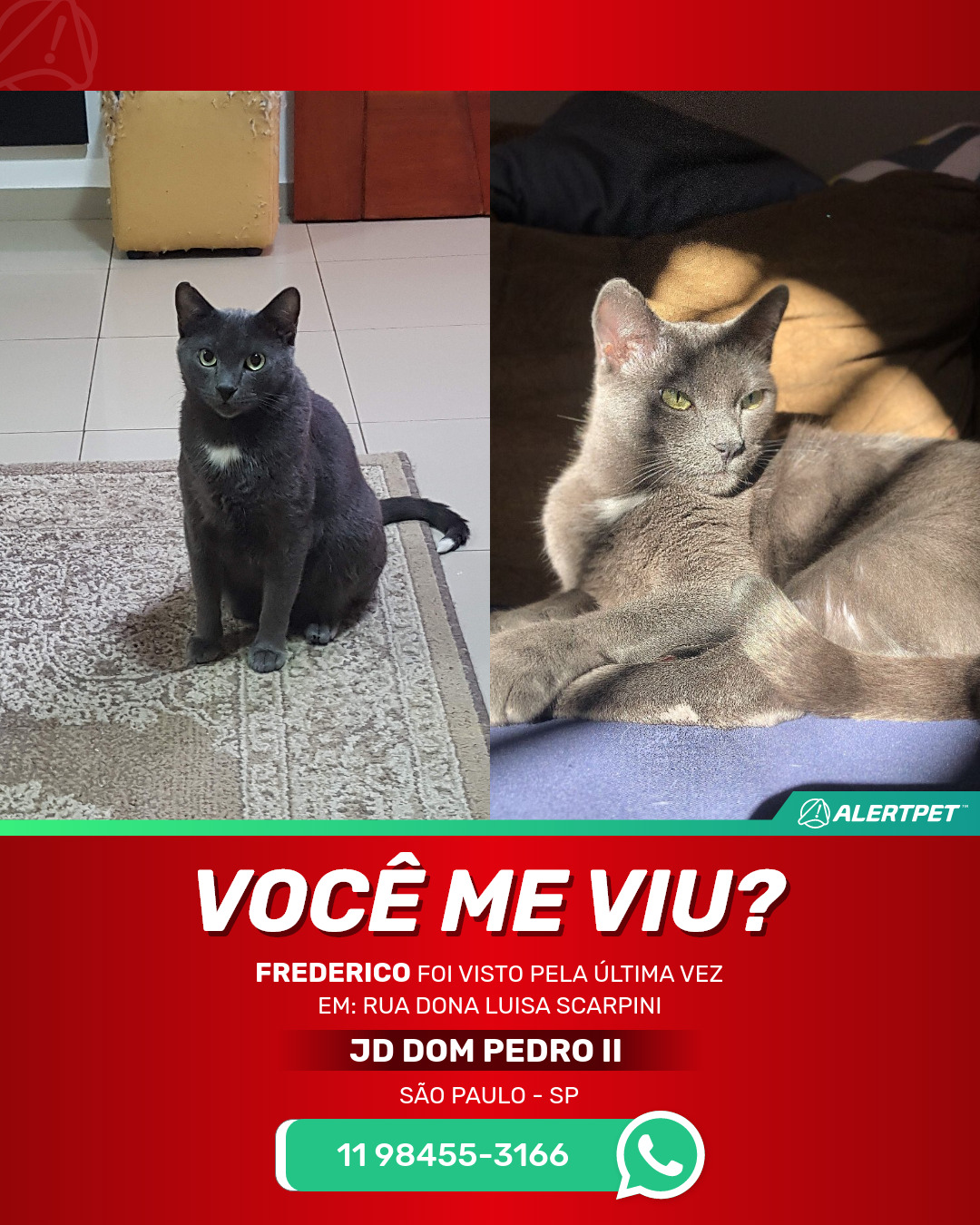 #AlertPet #Procurase #GatoDesaparecido #SaoPaulo #ProcuramosFrederico