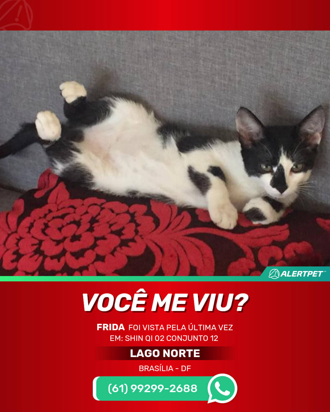 #alertpet #procurase #GatoDesaparecido #Brasília #procuramosFrida