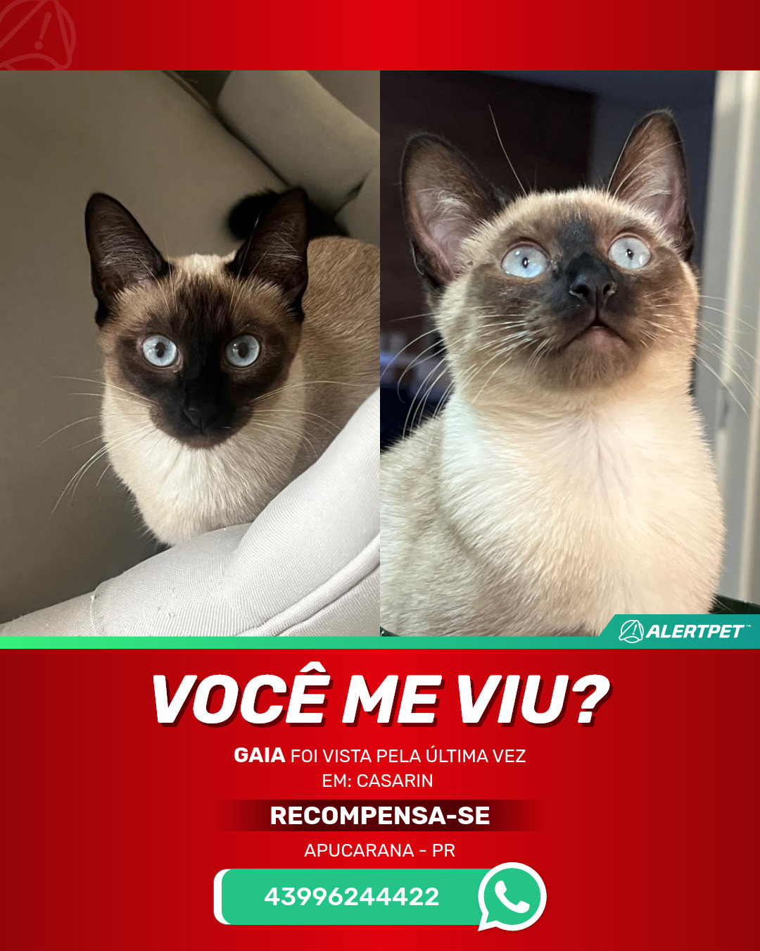 #AlertPet #Procurase #GatoDesaparecido #Apucarana #ProcuramosGaia