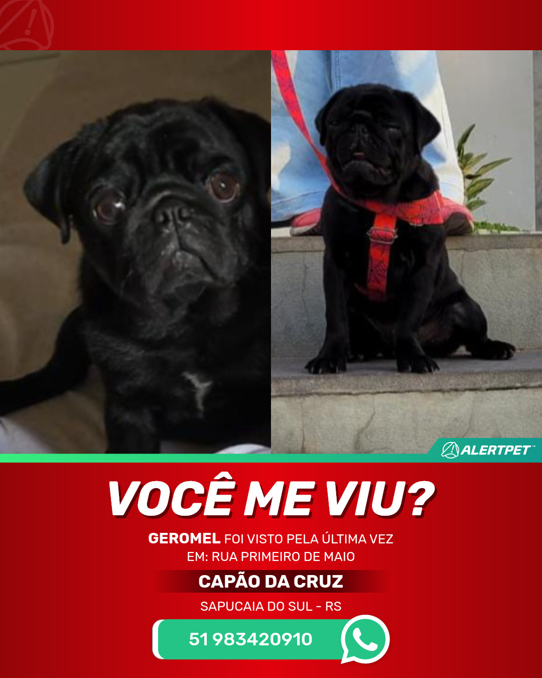 #AlertPet #Procurase #CachorroDesaparecido #SapucaiaDoSul #ProcuramosGeromel