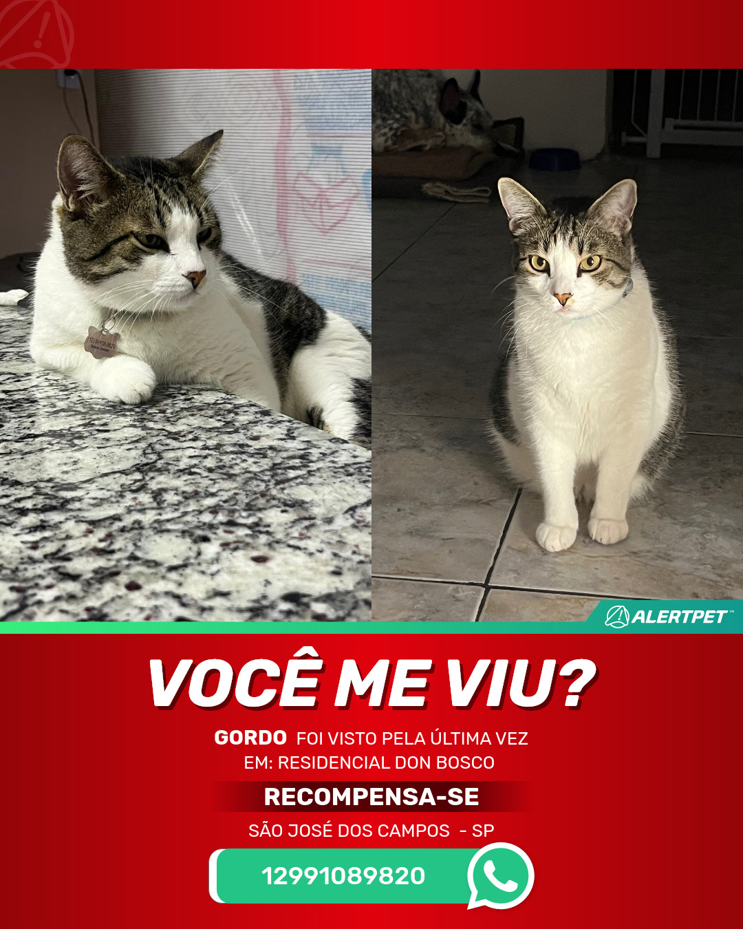 #AlertPet #Procurase #GatoDesaparecido #SaoJoseDosCampos #ProcuramosGordo
