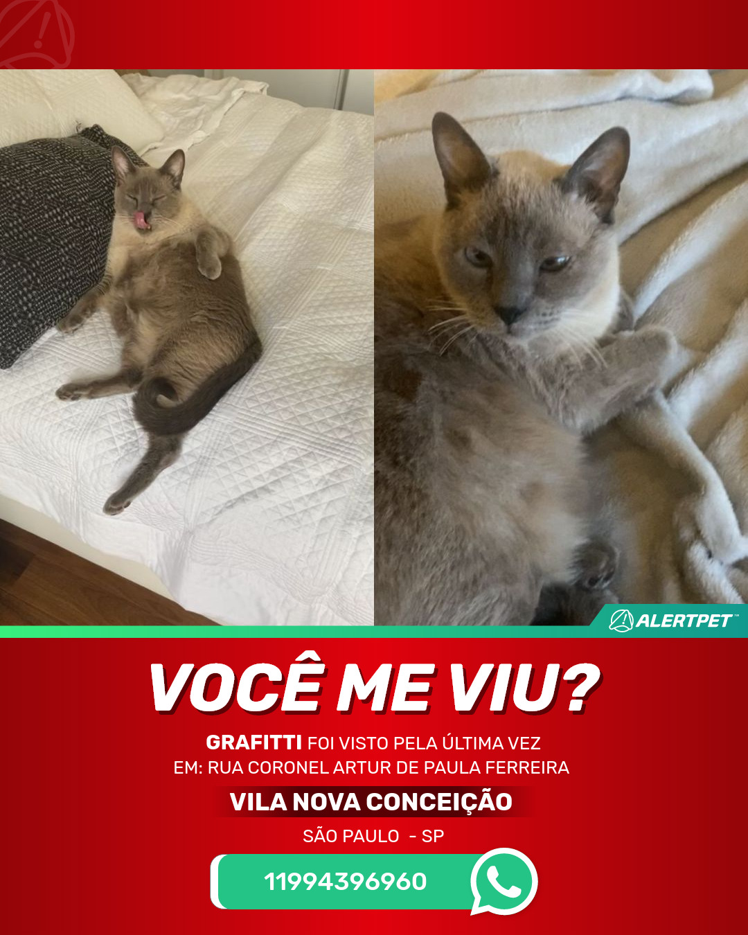 #AlertPet #Procurase #GatoDesaparecido #SaoPaulo #ProcuramosGrafitti