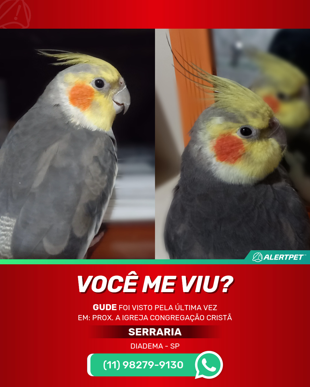 #alertpet #procurase #PássaroDesaparecido #Diadema #procuramosGude