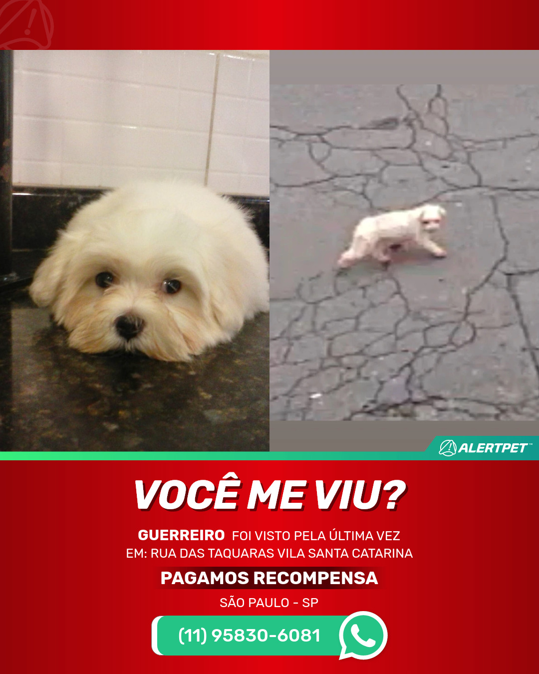 #alertpet #procurase #CachorroDesaparecido #São Paulo #procuramosGuerreiro