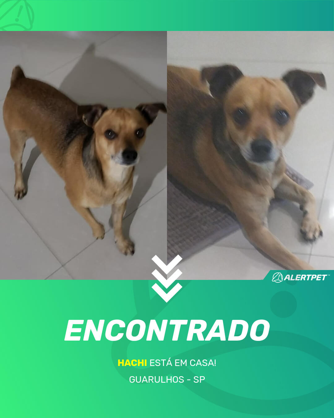 Depois de dois meses a cadelinha foi finalmente localizada graças a um anúncio da AlertPet