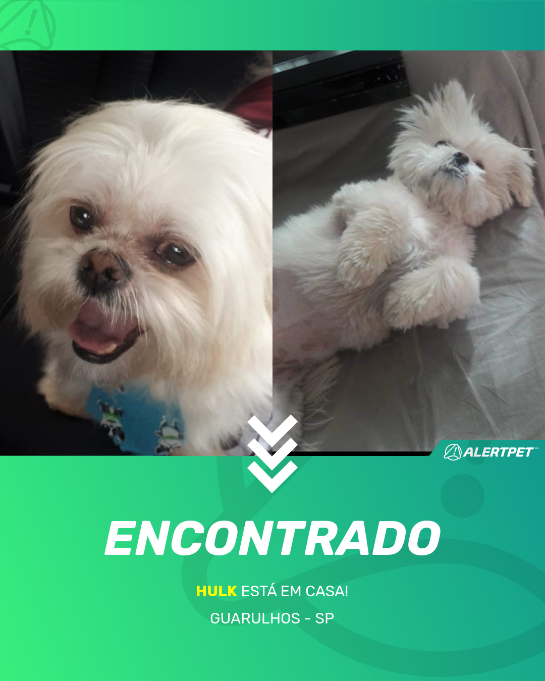 Depois de dois meses a cadelinha foi finalmente localizada graças a um anúncio da AlertPet