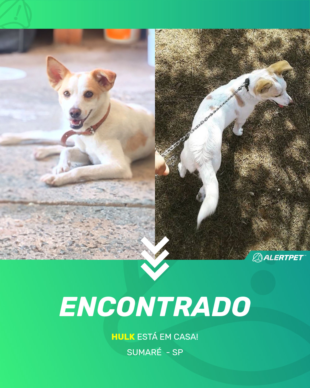 Depois de dois meses a cadelinha foi finalmente localizada graças a um anúncio da AlertPet
