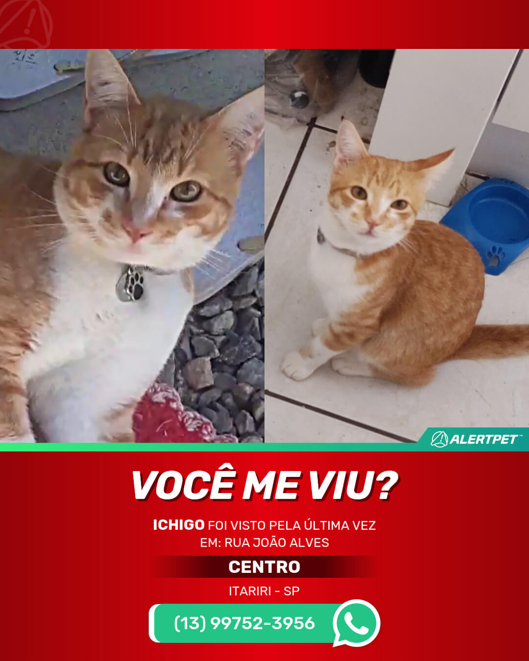 #alertpet #procurase #GatoDesaparecido #Itariri #procuramosIchigo