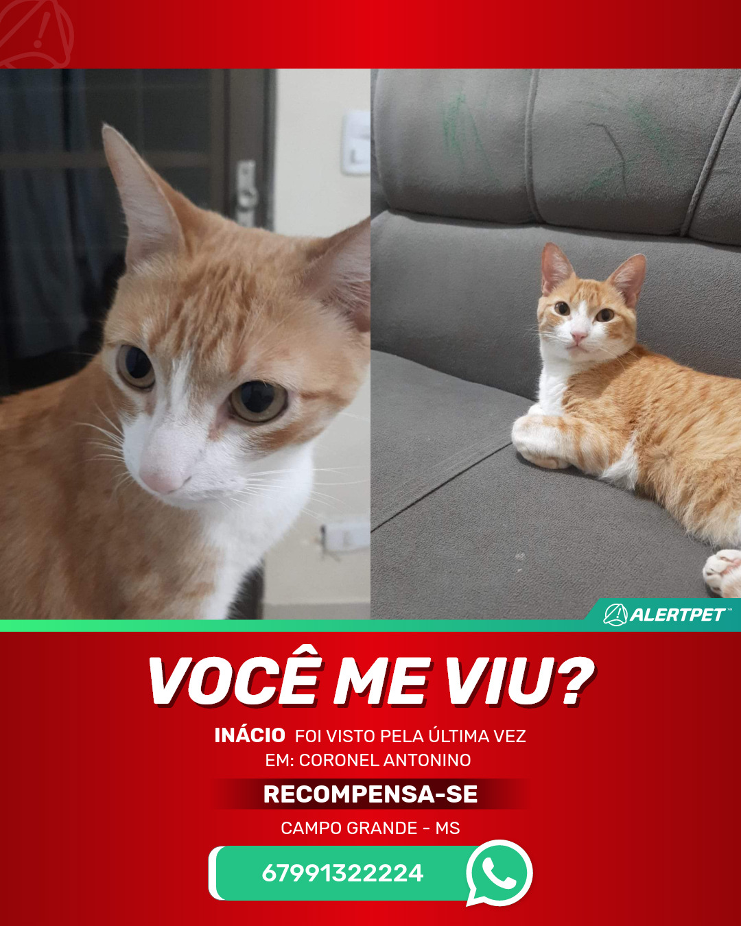 #AlertPet #Procurase #GatoDesaparecido #CampoGrande #ProcuramosInacio