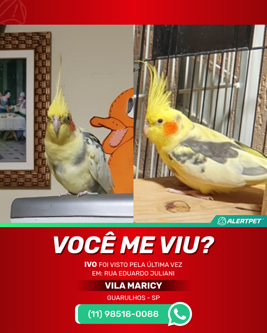 #AlertPet #Procurase #PassaroDesaparecido #Guarulhos #ProcuramosIvo