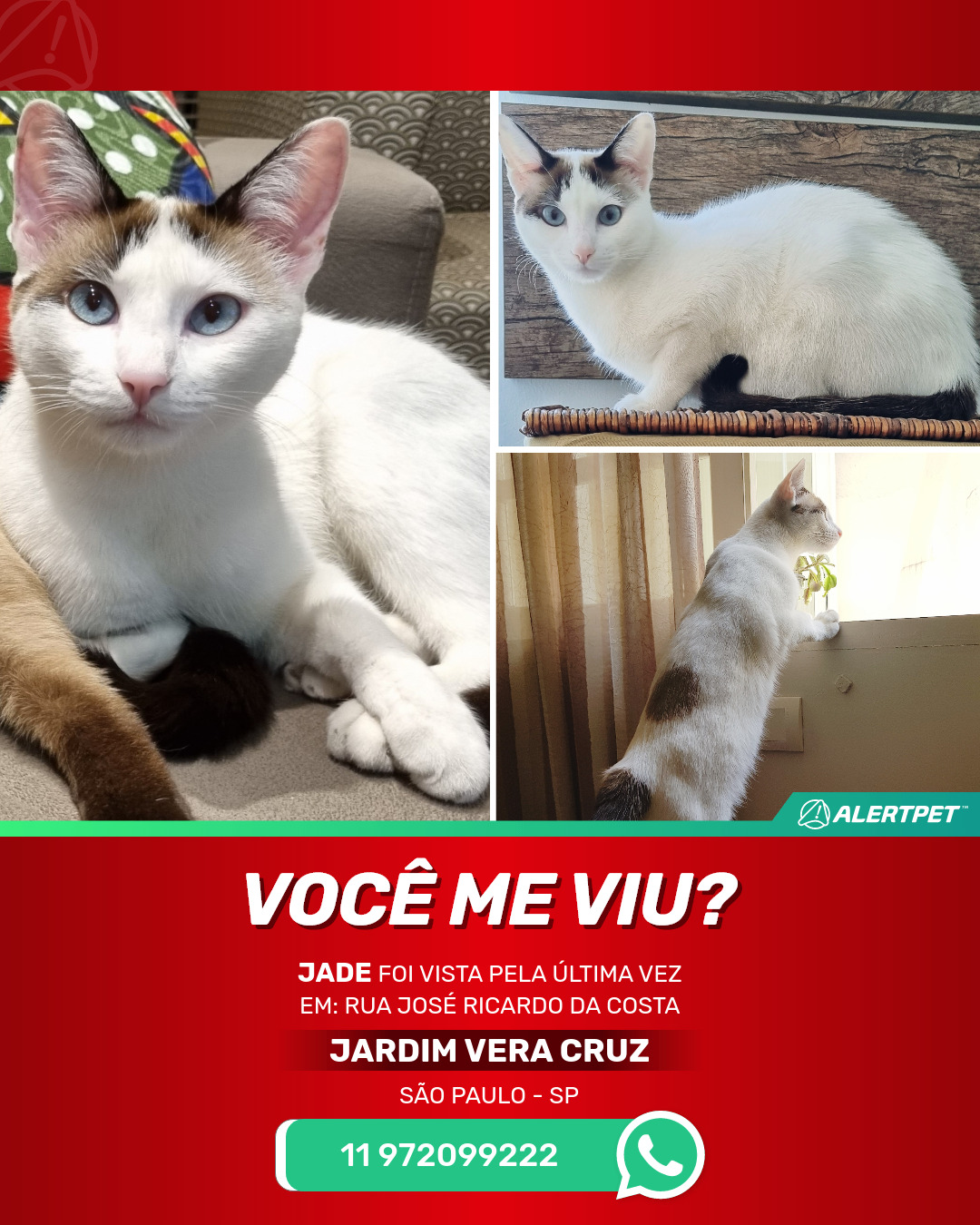 #alertpet #procurase #GatoDesaparecido #São Paulo #procuramosJade