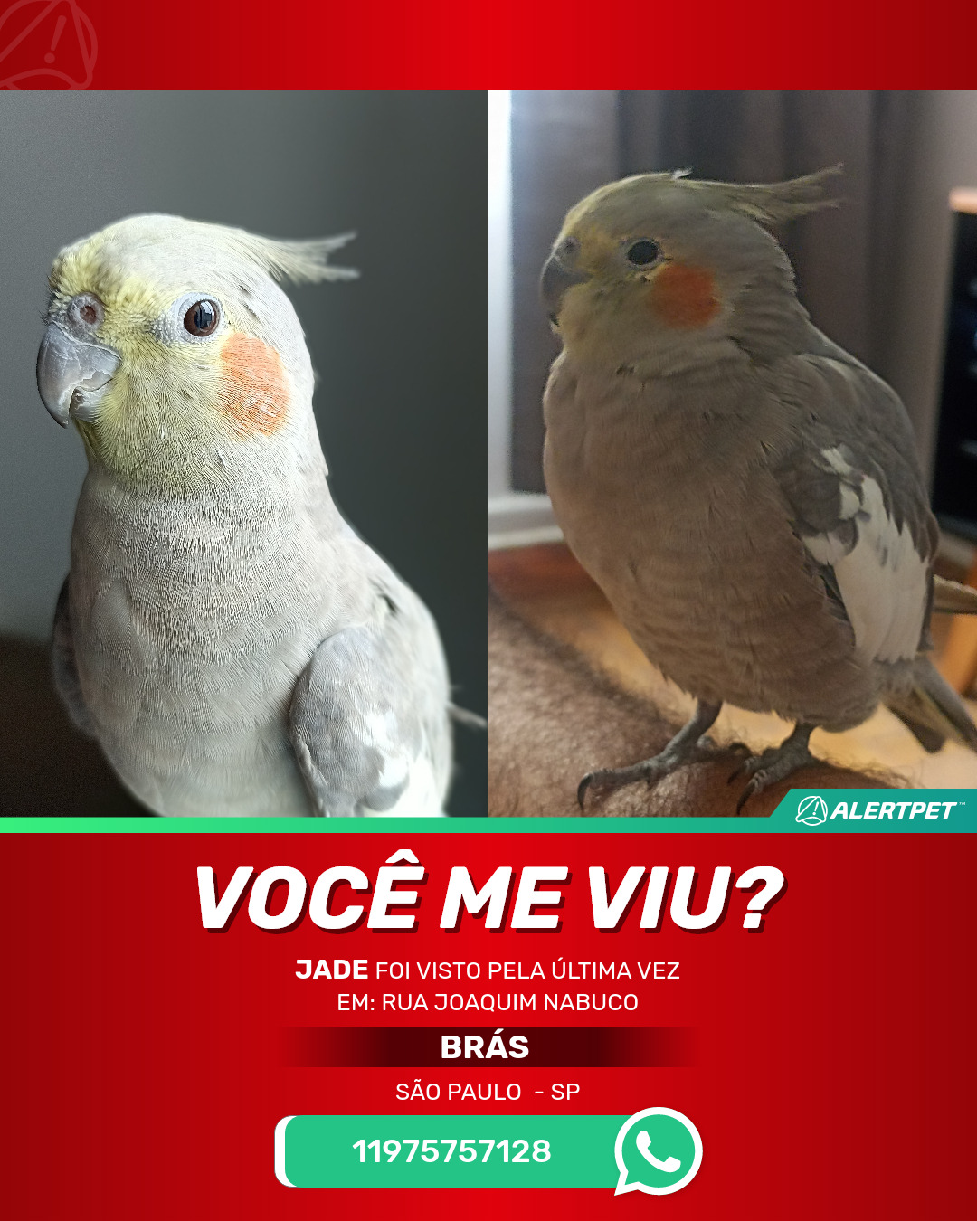 #AlertPet #Procurase #PassaroDesaparecido #SaoPaulo #ProcuramosJade