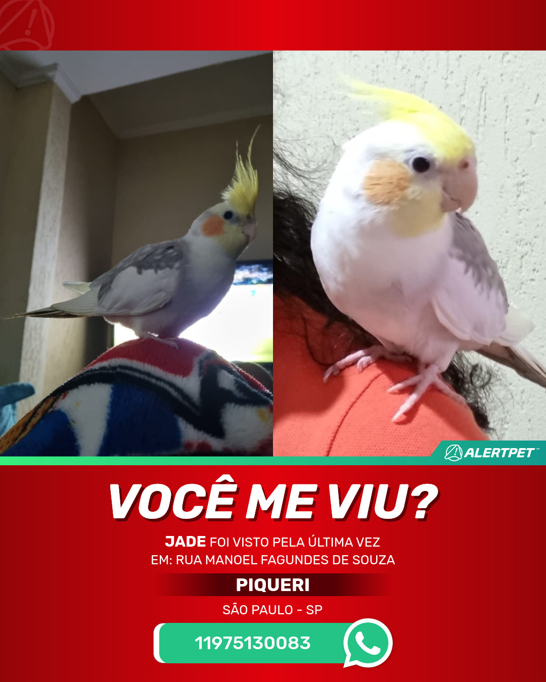 #AlertPet #Procurase #PassaroDesaparecido #SaoPaulo #ProcuramosJade