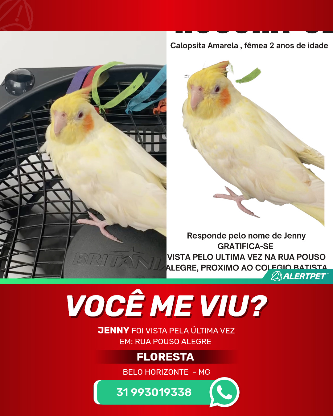 #AlertPet #Procurase #PassaroDesaparecido #BeloHorizonte #ProcuramosJenny