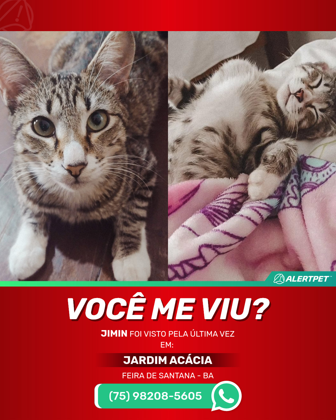 #AlertPet #Procurase #GatoDesaparecido #FeiraDeSantana #ProcuramosJimin