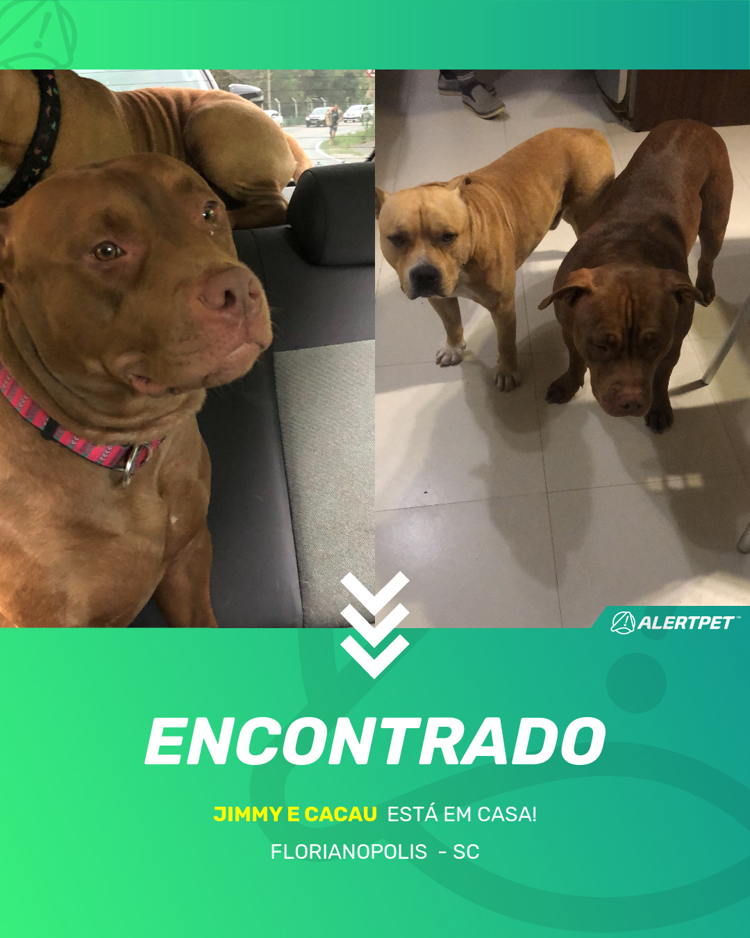 Depois de dois meses a cadelinha foi finalmente localizada graças a um anúncio da AlertPet