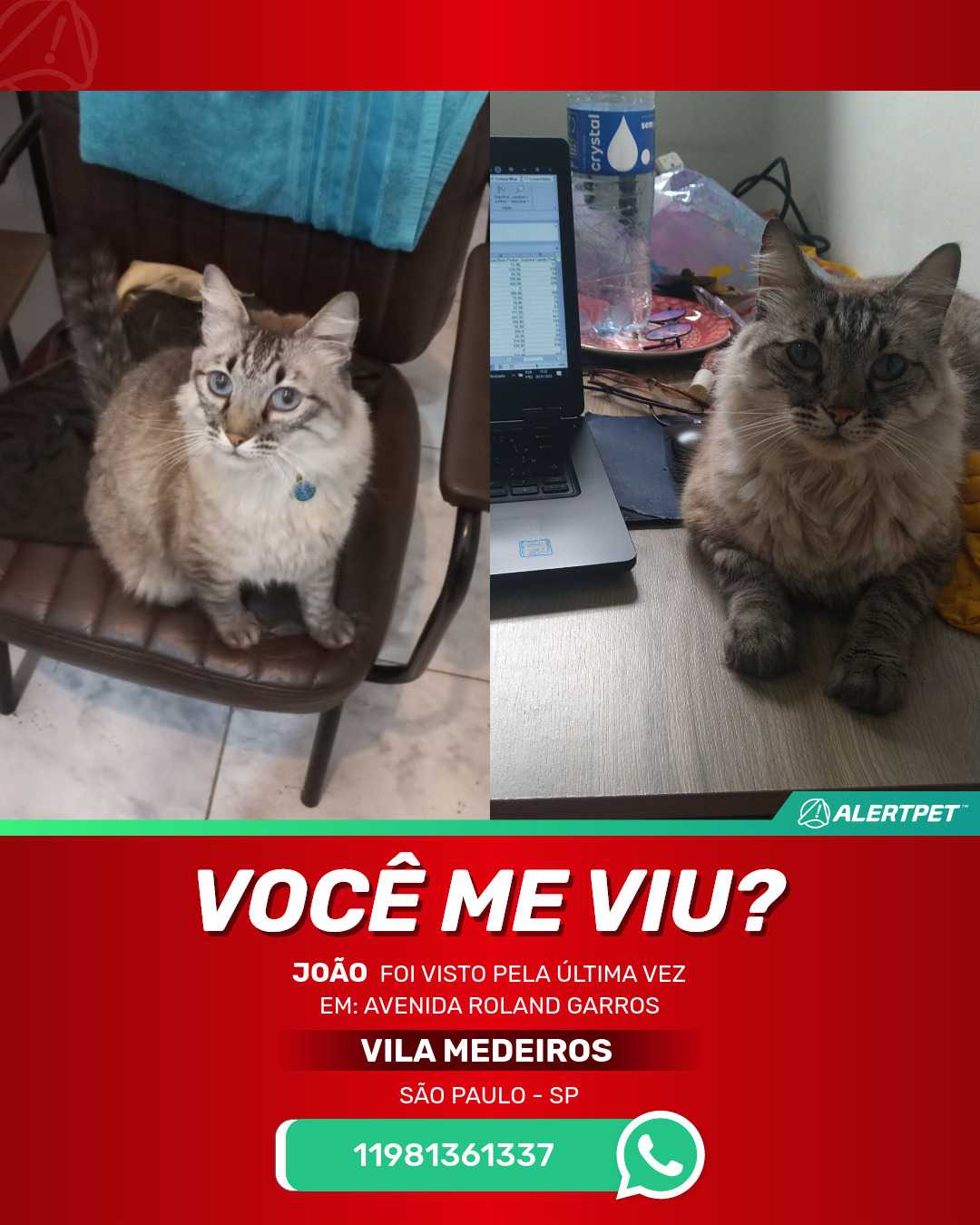 #AlertPet #Procurase #GatoDesaparecido #SaoPaulo #ProcuramosJoao
