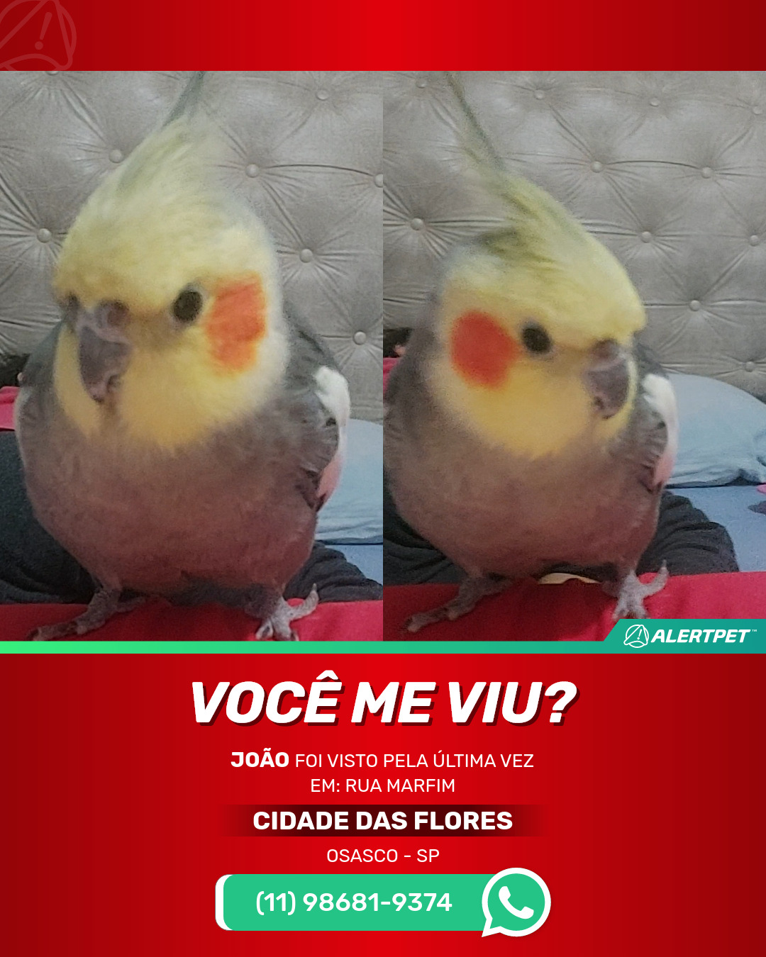 #alertpet #procurase #PássaroDesaparecido #Osasco #procuramosJoão