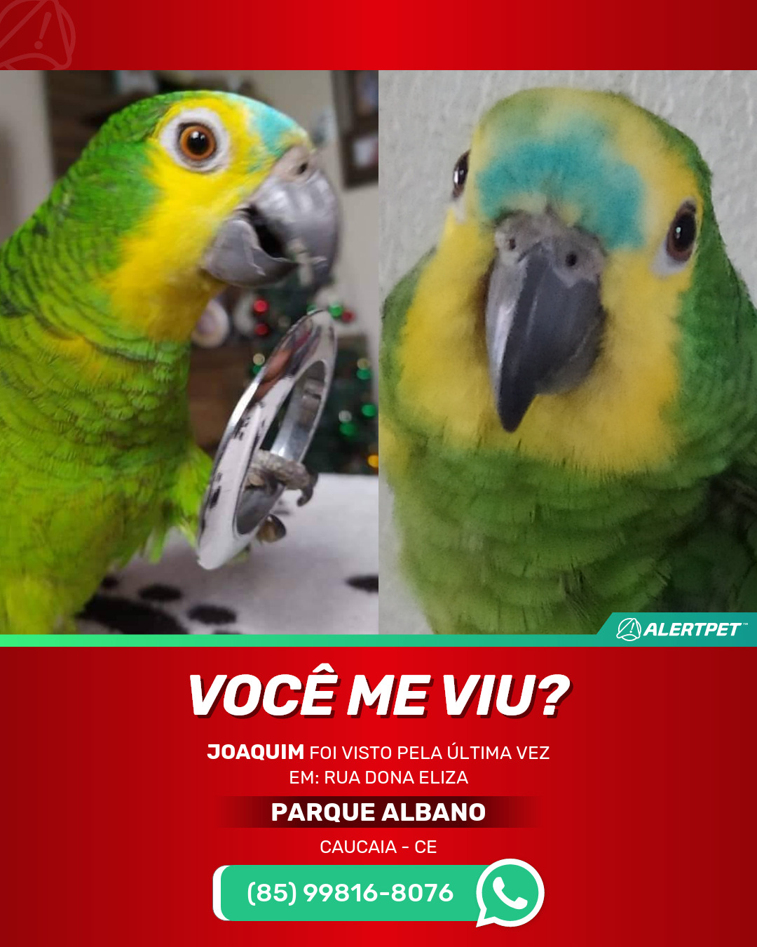 #alertpet #procurase #PássaroDesaparecido #Caucaia #procuramosJoaquim