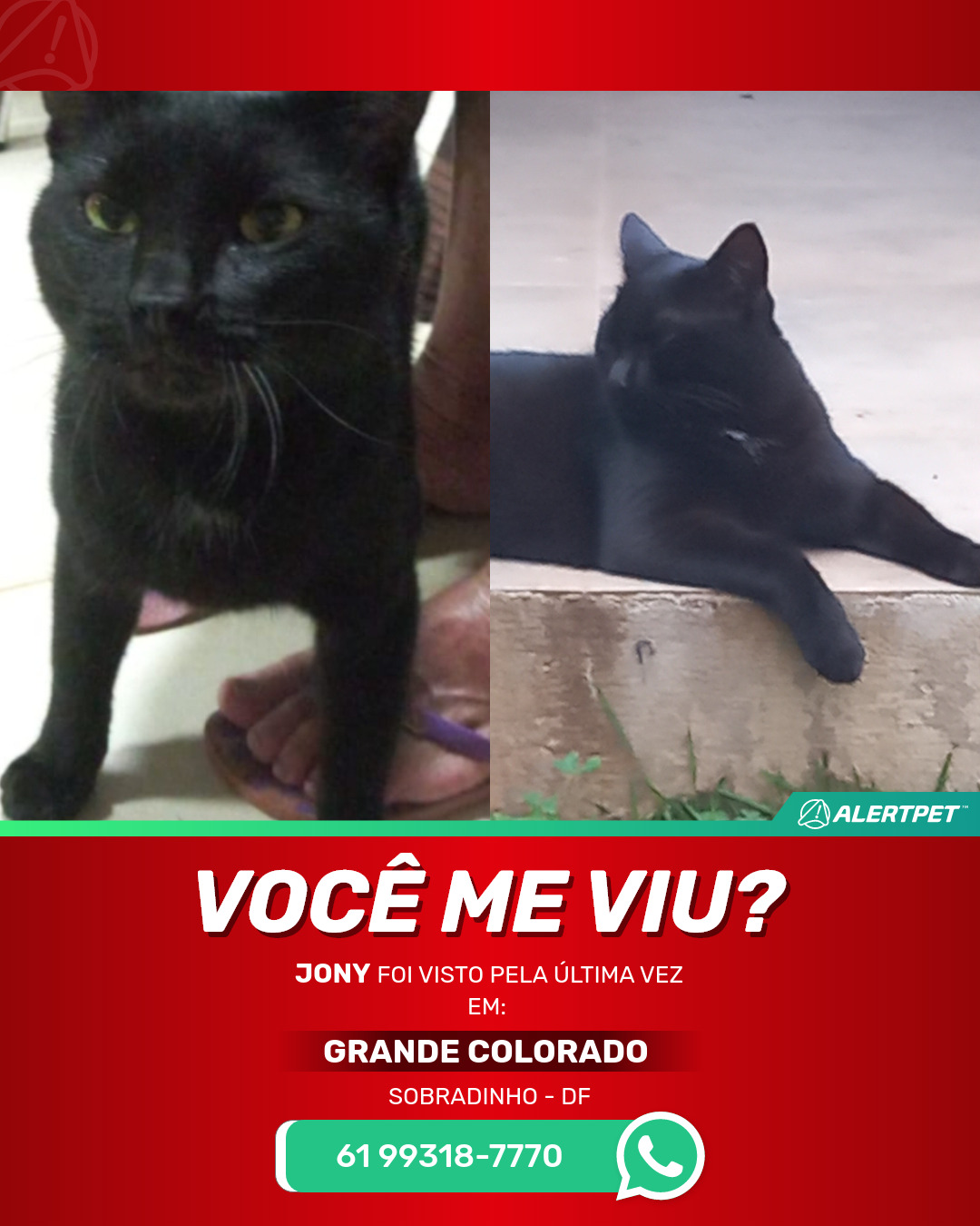 #AlertPet #Procurase #GatoDesaparecido #Sobradinho #ProcuramosJony