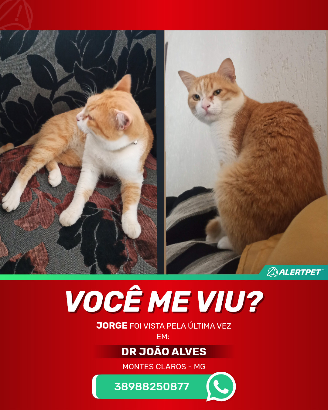 #AlertPet #Procurase #GatoDesaparecido #MontesClaros #ProcuramosJorge