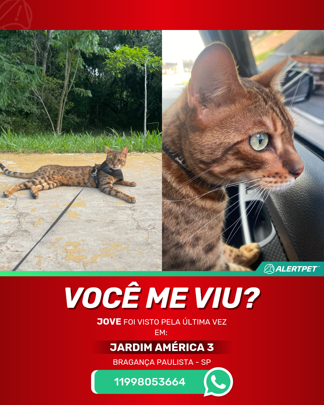#AlertPet #Procurase #GatoDesaparecido #BragancaPaulista #ProcuramosJove