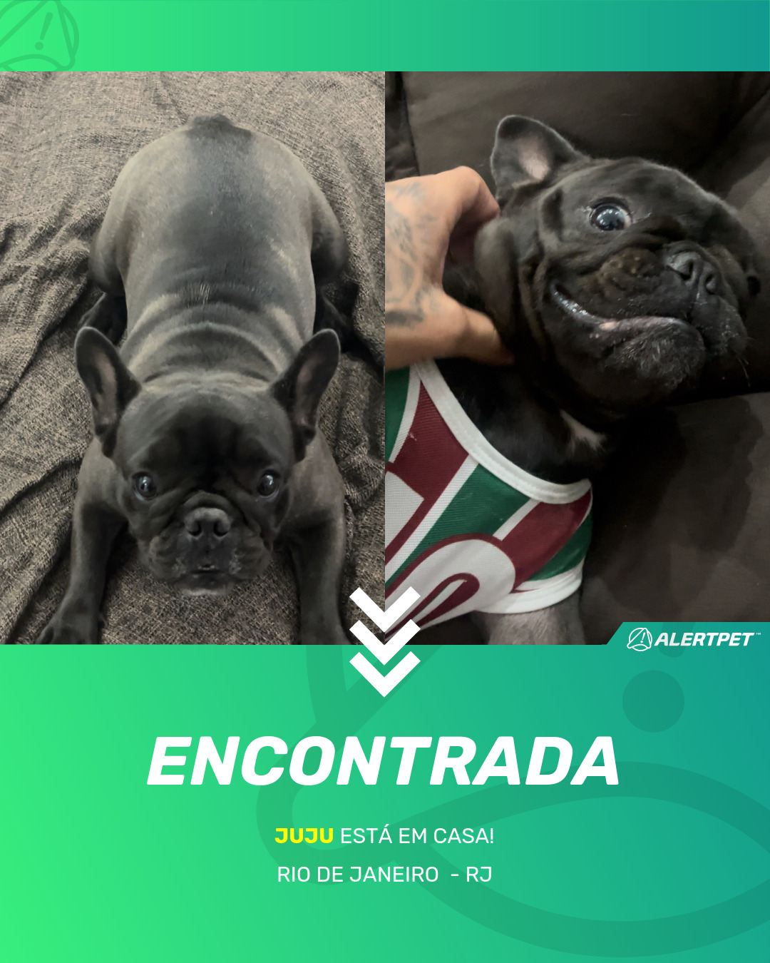 Depois de dois meses a cadelinha foi finalmente localizada graças a um anúncio da AlertPet