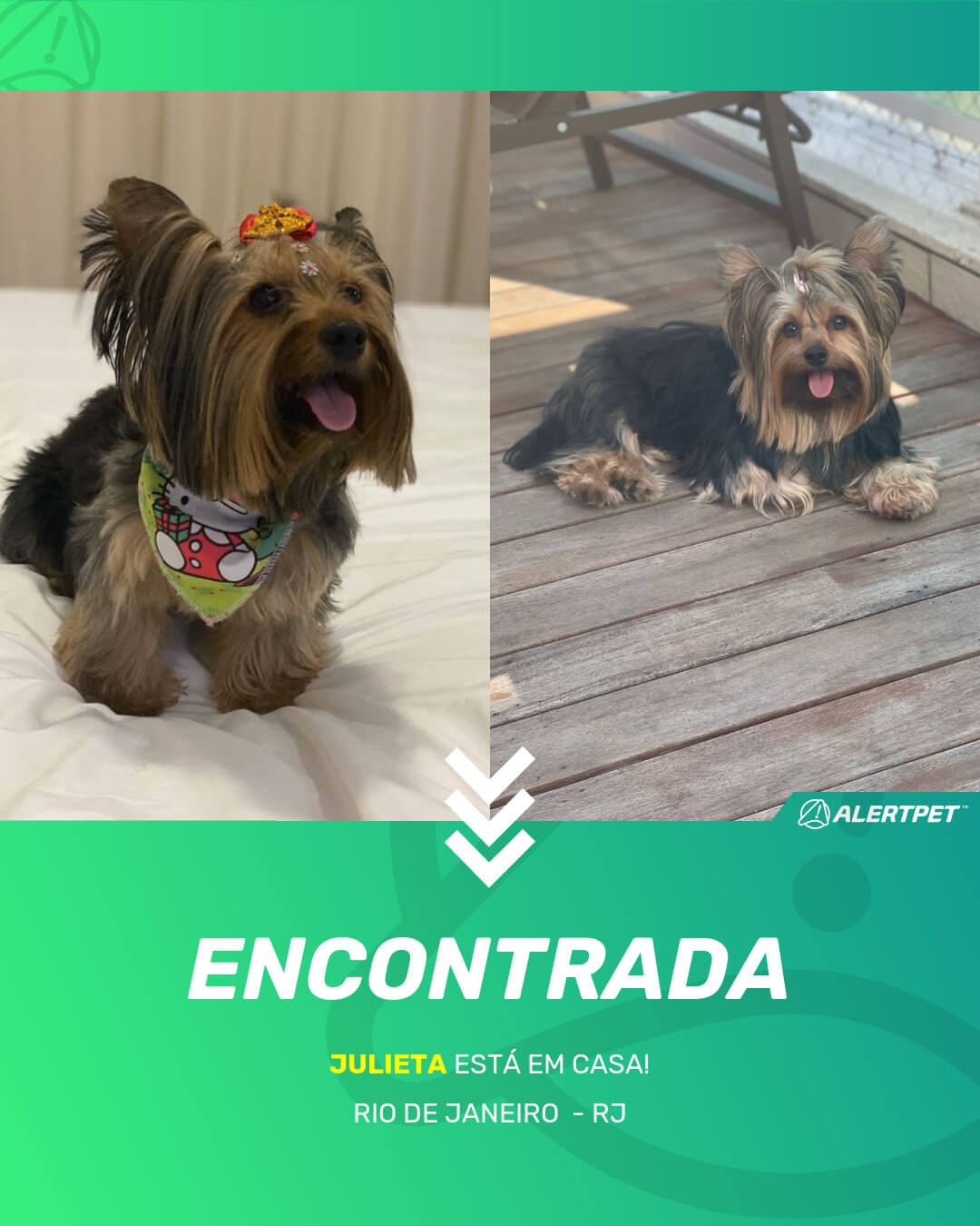Depois de dois meses a cadelinha foi finalmente localizada graças a um anúncio da AlertPet
