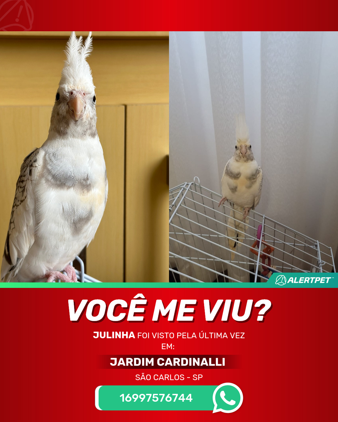 #AlertPet #Procurase #PassaroDesaparecido #SaoCarlos #ProcuramosJulinha