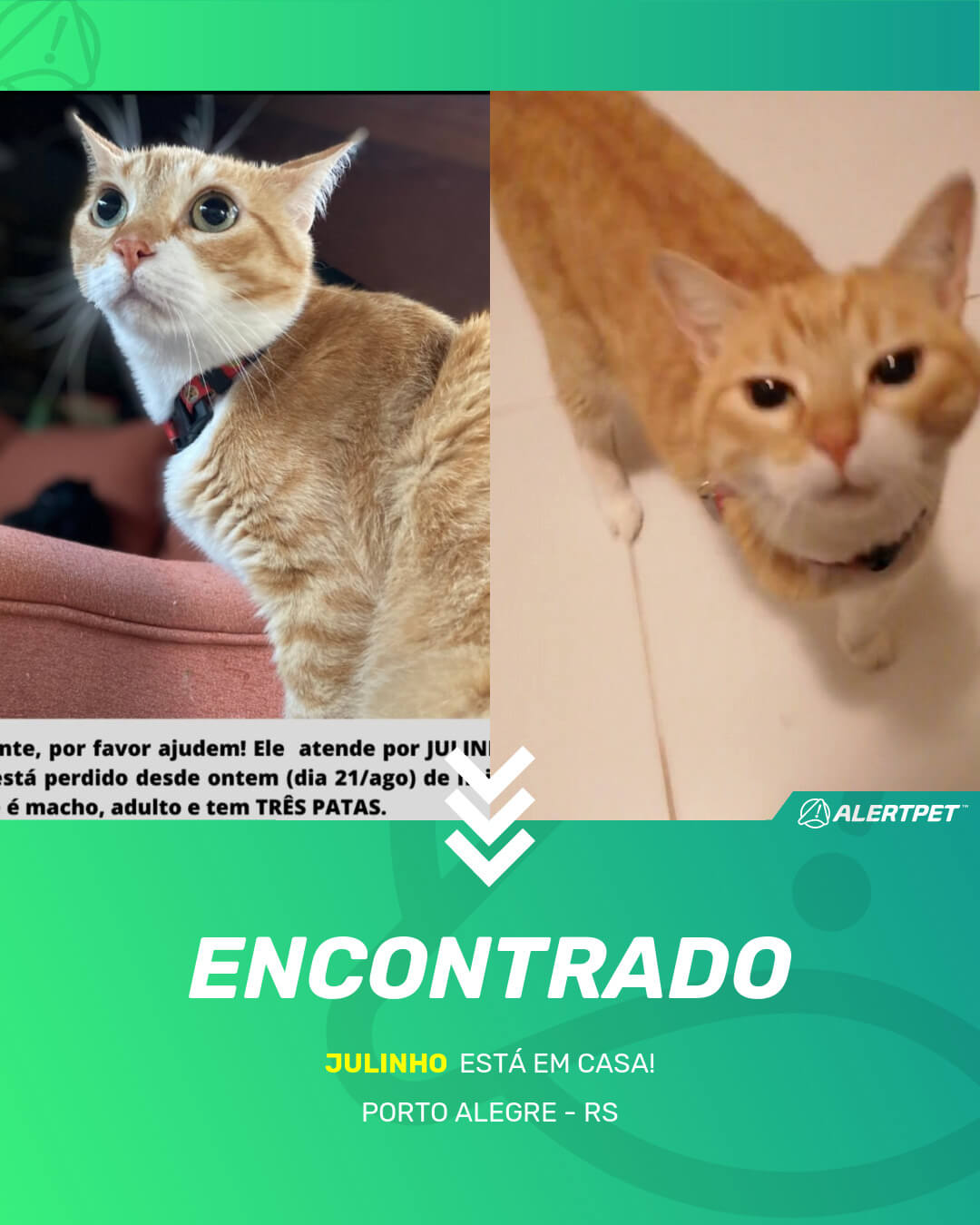 Caso tenha informações de um pet desaparecido comunicar imediatamente os tutores pelo telefone que está no anúncio.