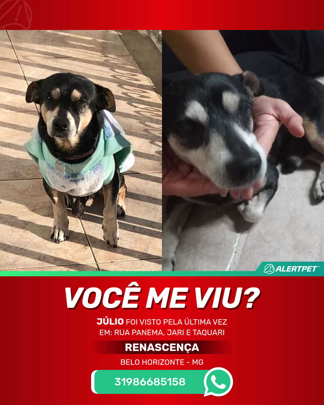 #AlertPet #Procurase #CachorroDesaparecido #BeloHorizonte #ProcuramosJulio
