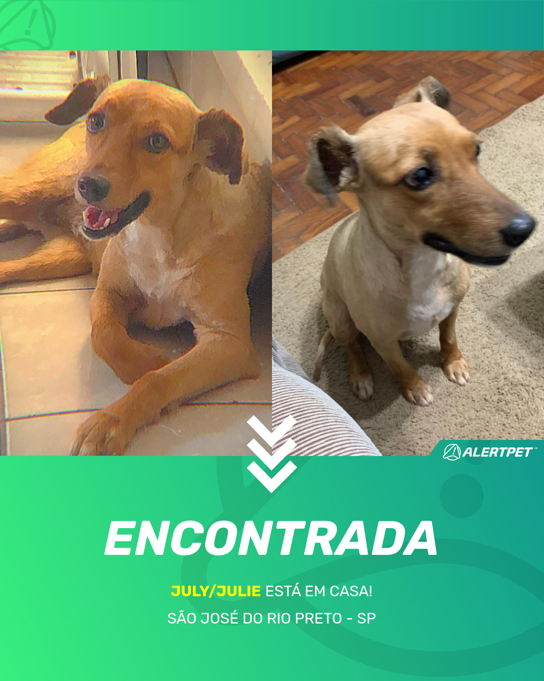 Depois de dois meses a cadelinha foi finalmente localizada graças a um anúncio da AlertPet