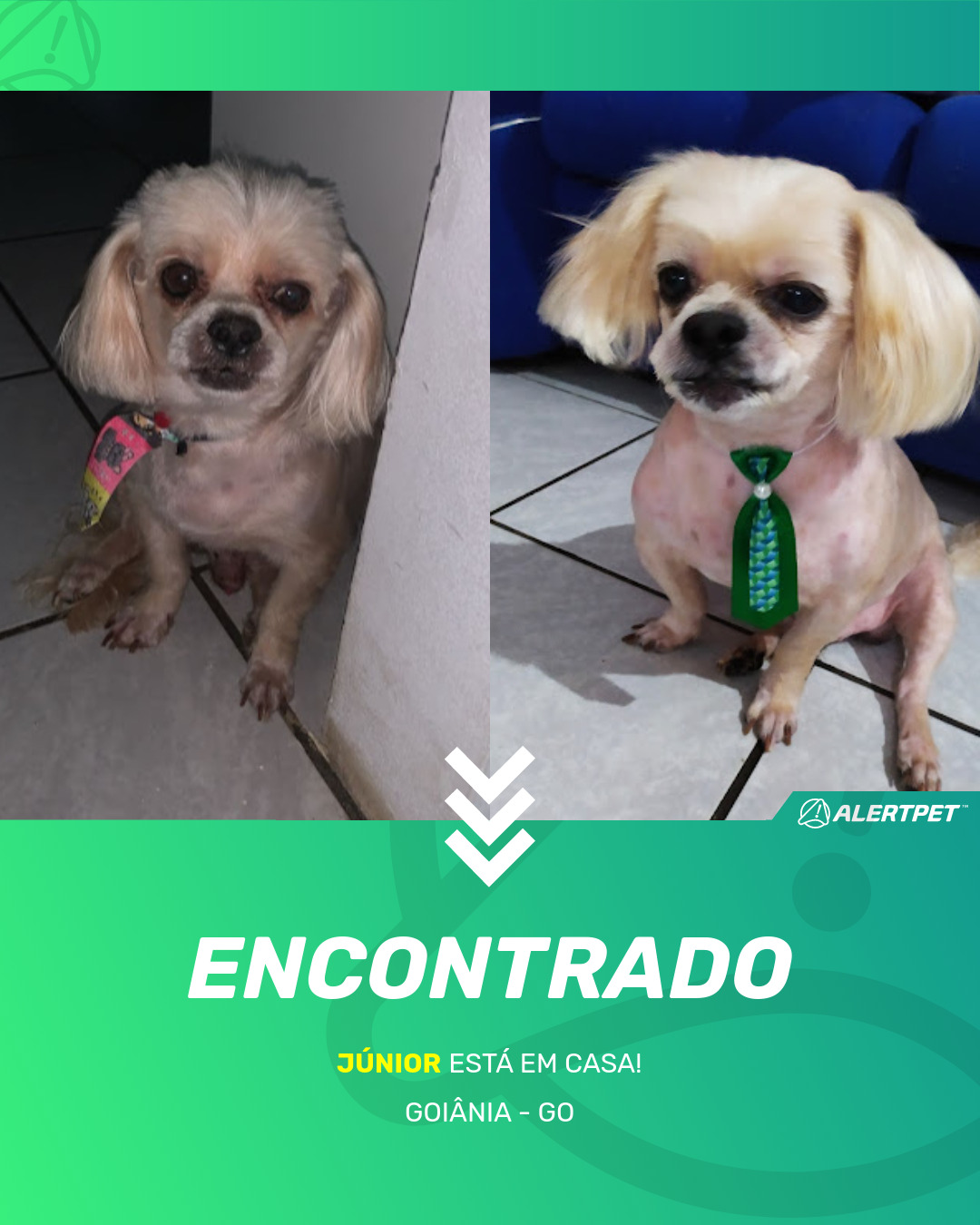 Depois de dois meses a cadelinha foi finalmente localizada graças a um anúncio da AlertPet