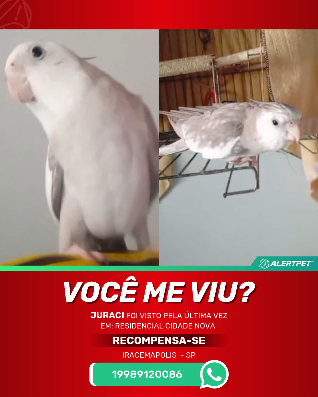 #AlertPet #Procurase #PassaroDesaparecido #Iracemapolis #ProcuramosJuraci