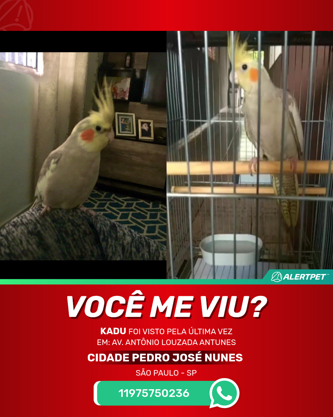 #AlertPet #Procurase #PassaroDesaparecido #SAoPaulo #ProcuramosKadu