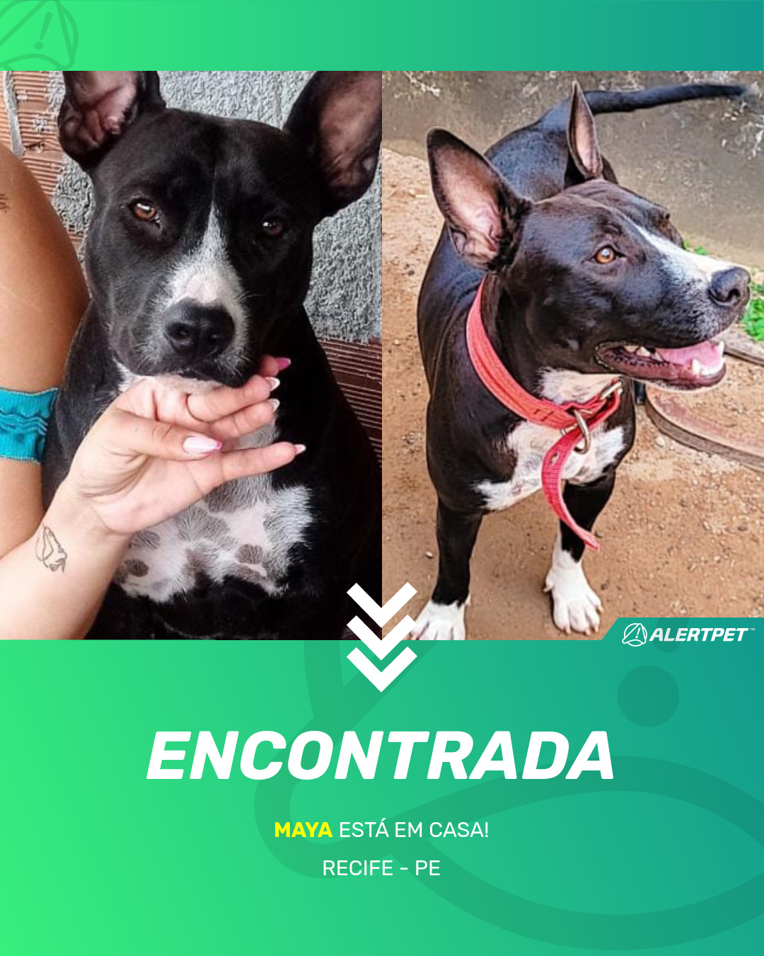 Depois de dois meses a cadelinha foi finalmente localizada graças a um anúncio da AlertPet