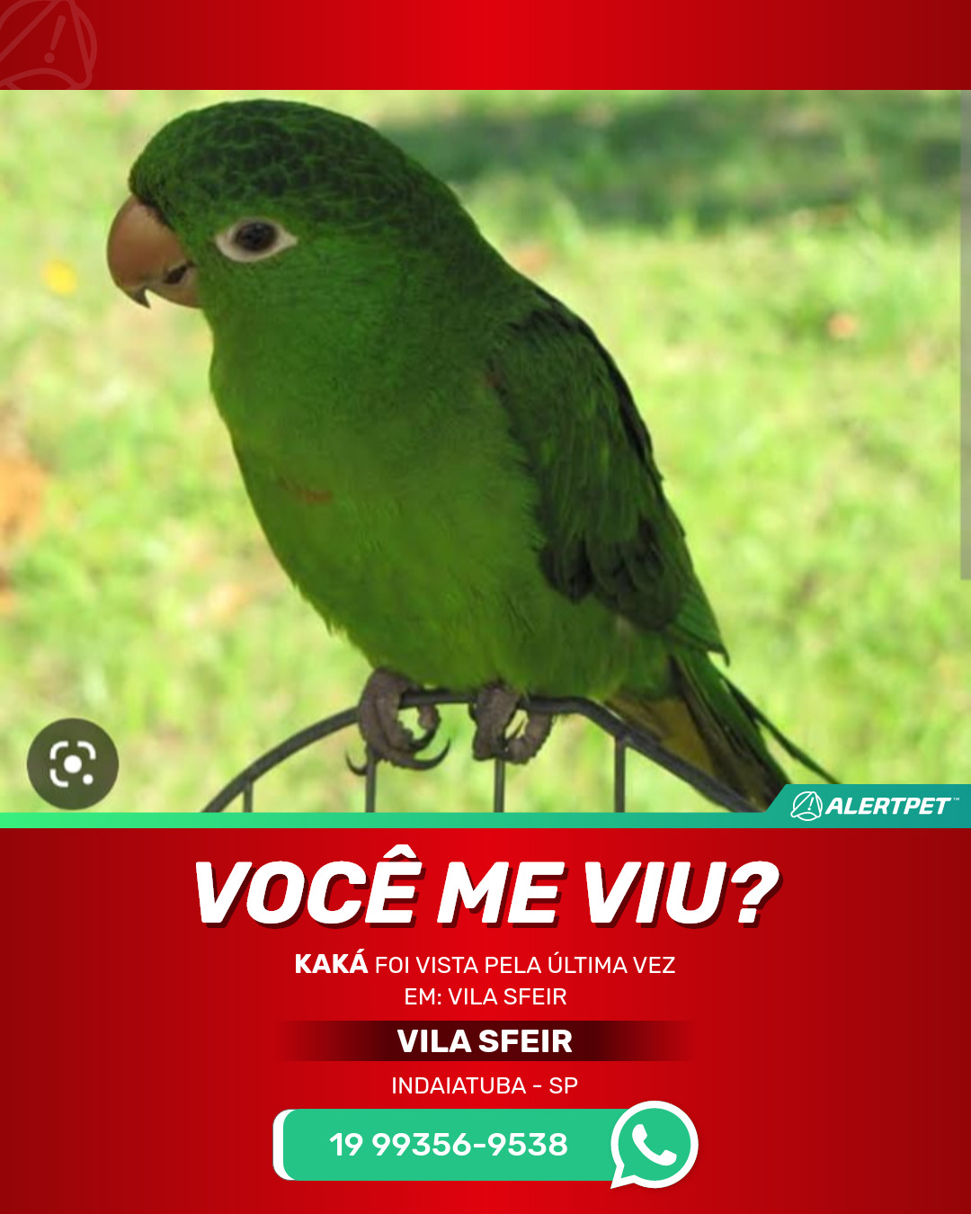 #AlertPet #Procurase #PassaroDesaparecido #Indaiatuba #ProcuramosKaka