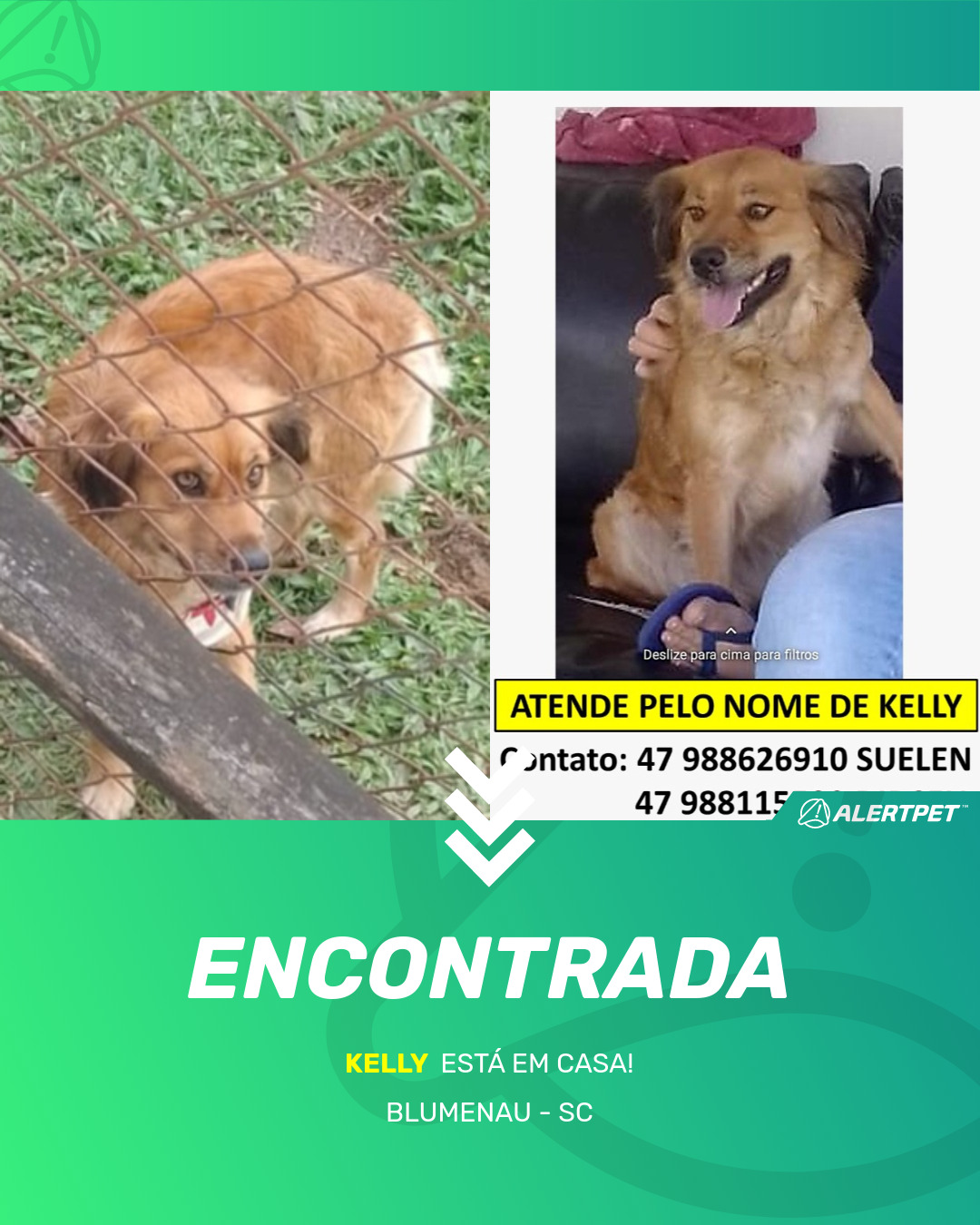 Depois de dois meses a cadelinha foi finalmente localizada graças a um anúncio da AlertPet