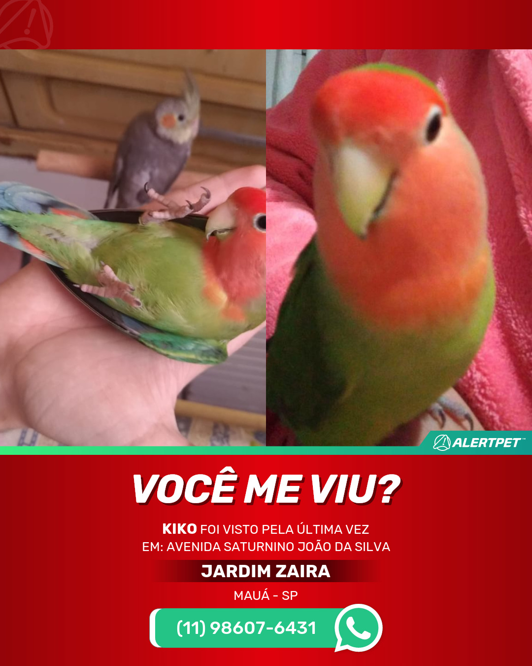 #alertpet #procurase #PássaroDesaparecido #Mauá #procuramosKiko