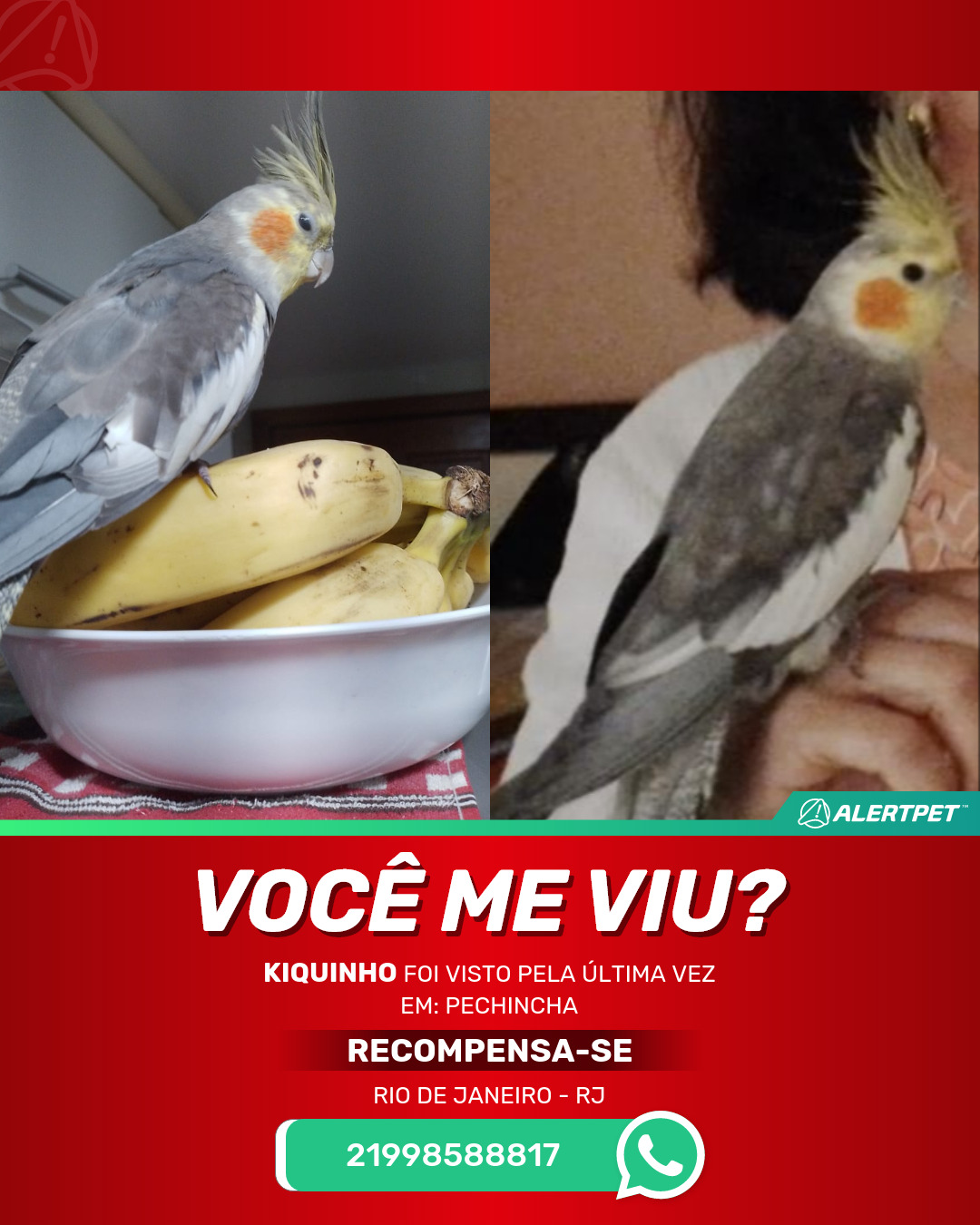 #AlertPet #Procurase #PassaroDesaparecido #RioDeJaneiro #ProcuramosKiquinho