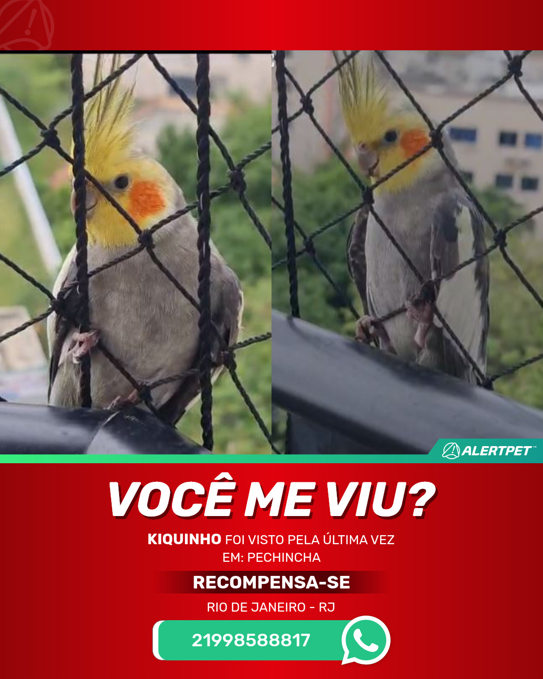 #AlertPet #Procurase #PassaroDesaparecido #RioDeJaneiro #ProcuramosKiquinho