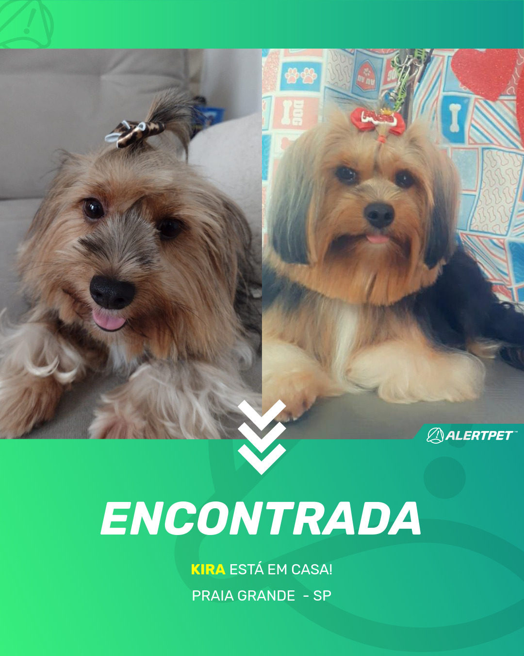 Depois de dois meses a cadelinha foi finalmente localizada graças a um anúncio da AlertPet
