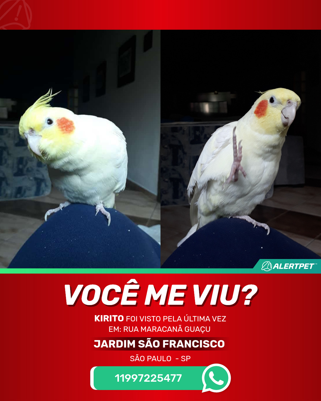 #AlertPet #Procurase #PassaroDesaparecido #SaoPaulo #ProcuramosKirito