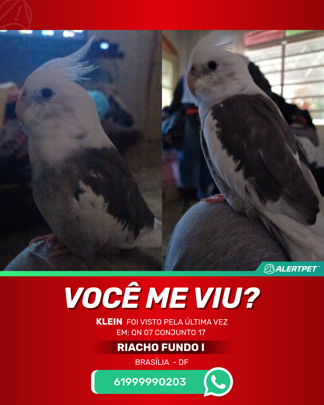 #AlertPet #Procurase #PassaroDesaparecido #Brasilia #ProcuramosKlein