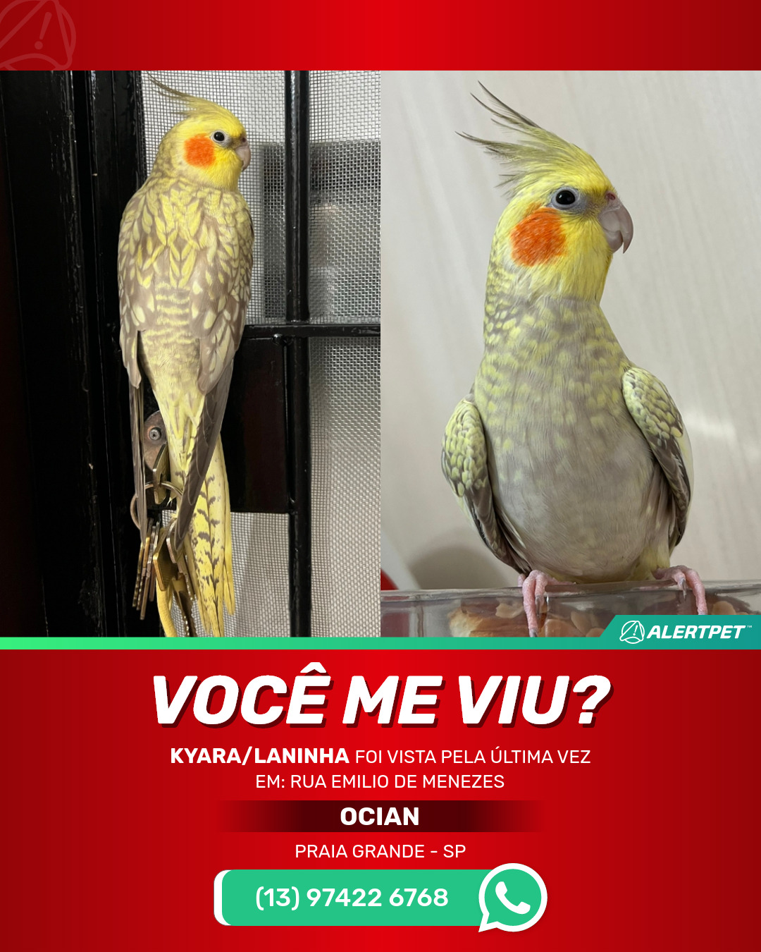 #AlertPet #Procurase #PassaroDesaparecido #PraiaGrande #ProcuramosKyara/laninha