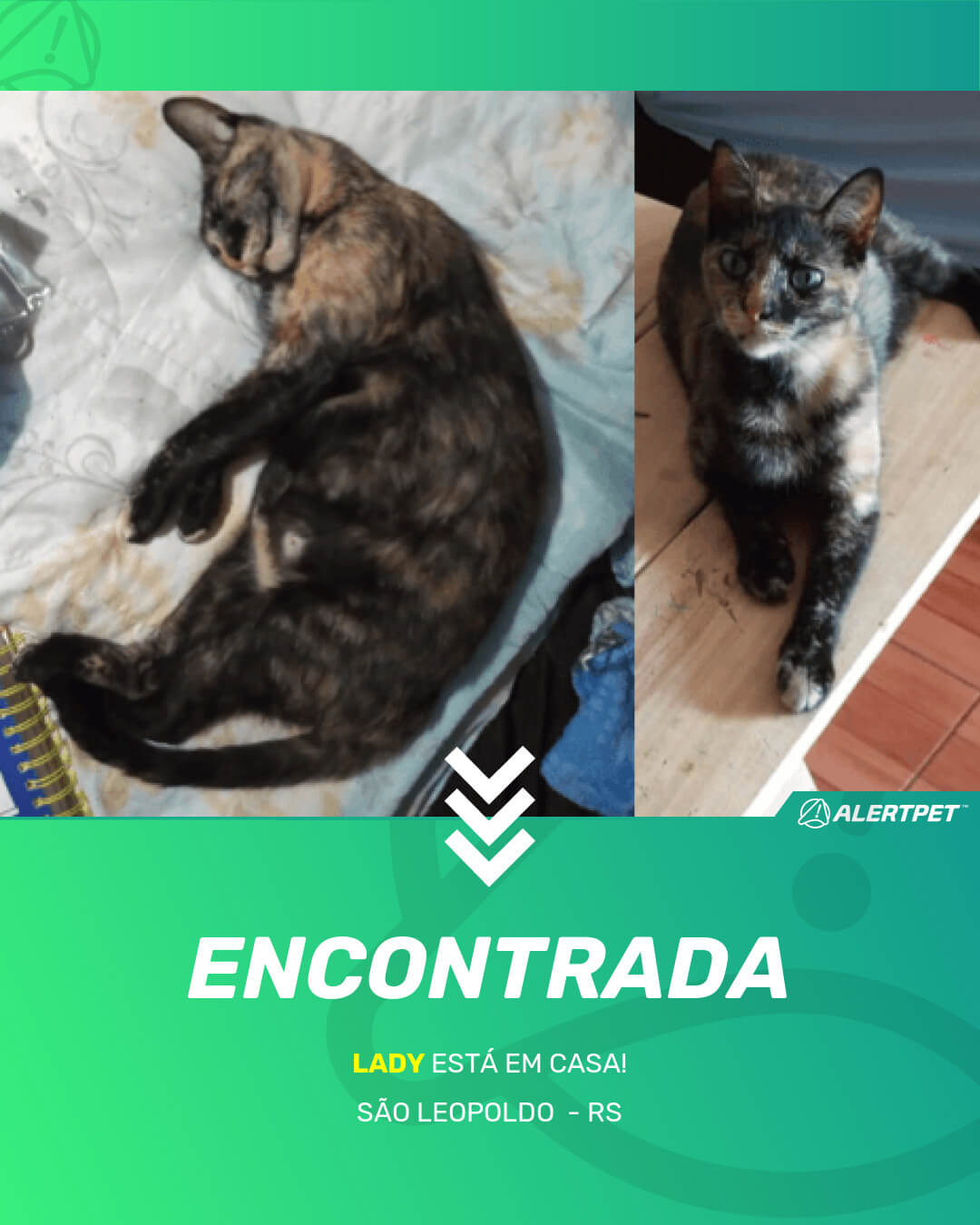 Depois de dois meses a cadelinha foi finalmente localizada graças a um anúncio da AlertPet