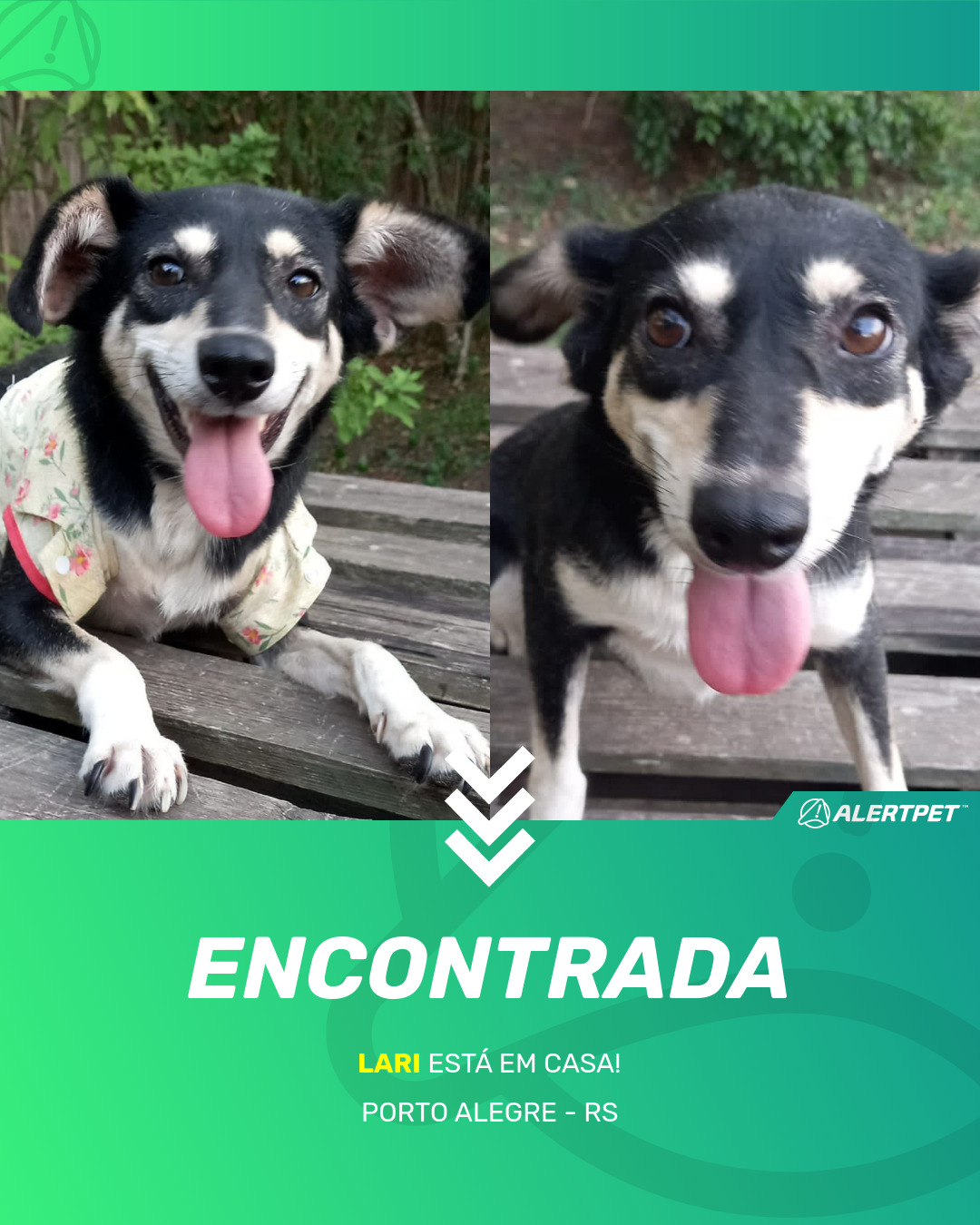 Depois de dois meses a cadelinha foi finalmente localizada graças a um anúncio da AlertPet