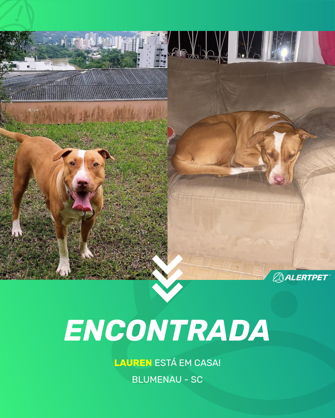 Procura-se cadela que fugiu no Bairro Ponta Aguda!Boa tarde pessoal, essa é a LAUREN, ela fugiu de casa na madrugada do dia 22/06 aproximadamente às 04h. Fugiu na rua México, que fica nas proximidades do túnel da ponte de ferro, da ponte dos arcos e do posto de gasolina Shell. Ela é uma cadela da raça Pit Bull, é extremamente dócil, brincalhona e medrosa.