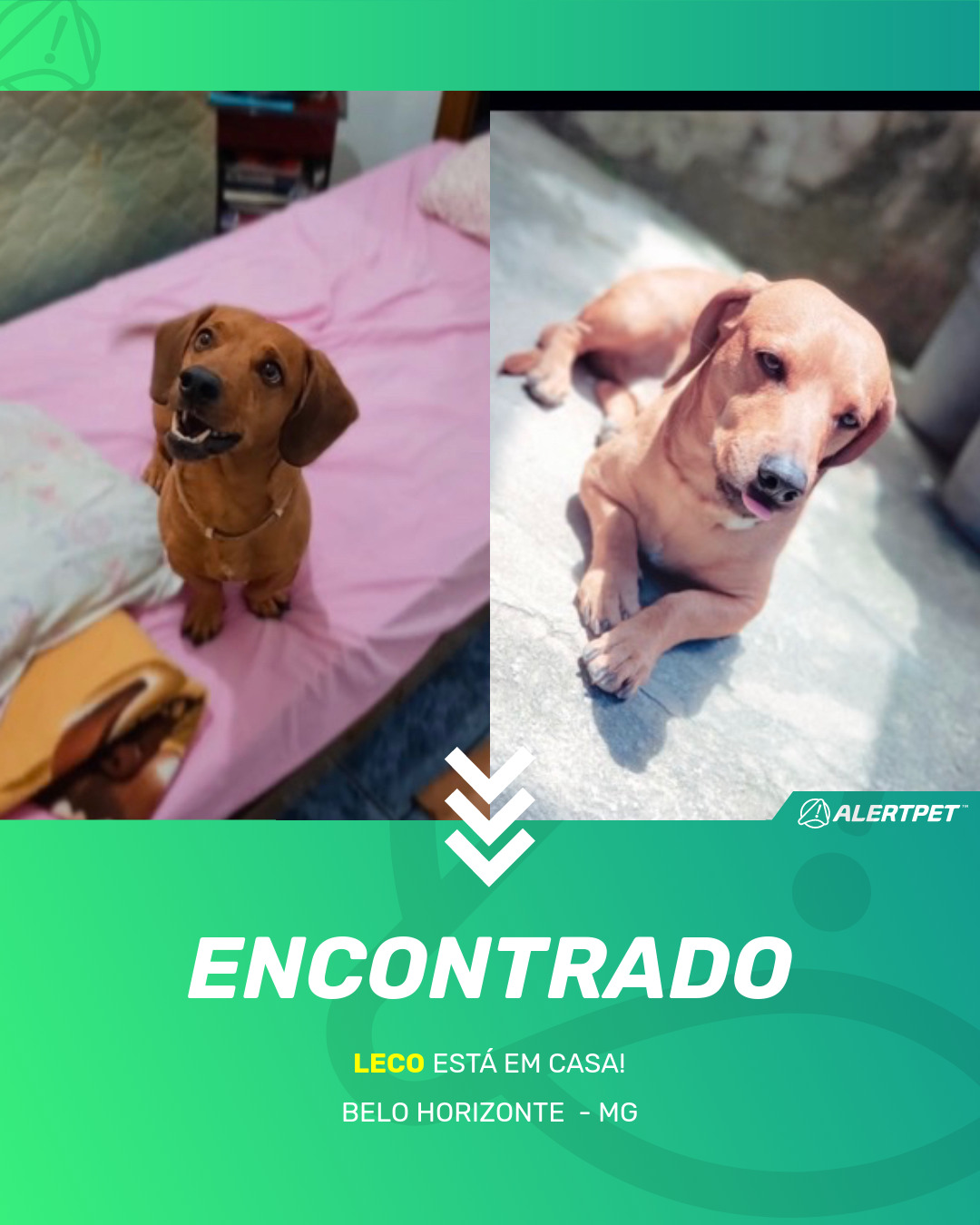 Depois de dois meses a cadelinha foi finalmente localizada graças a um anúncio da AlertPet