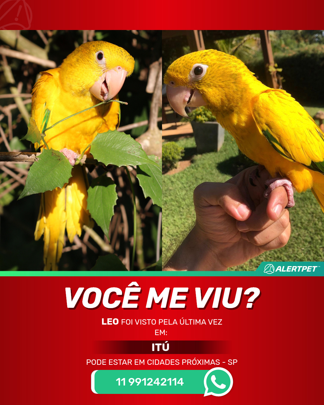 #AlertPet #Procurase #PassaroDesaparecido #Itu #ProcuramosLeo